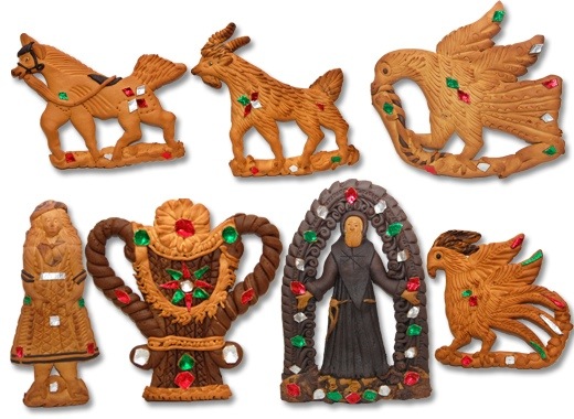 Tipica inoltre era l’usanza dei maestri “mostacciolari” di Soriano Calabro di dare la forma del santo protettore del paese dove i dolci venivano venduti in occasione delle feste patronali, una vera e propria personalizzazione in ambito locale. Un mondo di odori quello dei mostaccioli, ma anche di sapori e di colori, un mondo che si sprigionava dalla cassa dei mastazzolari di Soriano e inondava i paesi in festa e in fiera.